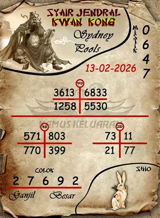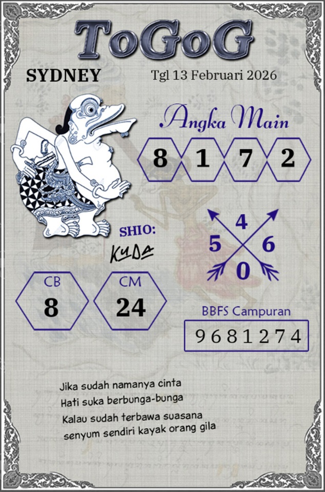 Syair Sydney Hari Ini Jumat 13 Februari 2026